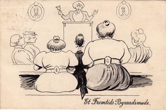 HER ER NOGLE FÅ POSTKORT SOM ER UDGIVET I FORBINDELSE MED ÆNDRINGEN AF GRUNDLOVEN DA KVINDERNES VALGRET BLEV INDFØRT.