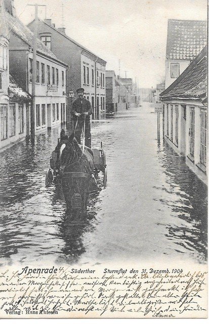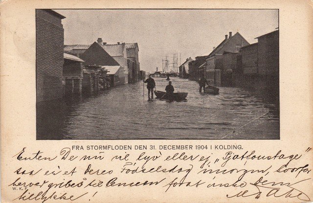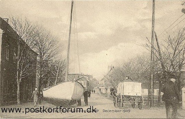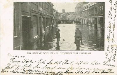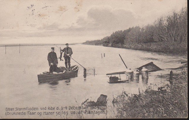 Efter Stormfloden ved Ribe den .3-4 December 1909. Set mod Ribe fra nord mod syd. [...]Kortet ejes af Karl H. Andresen