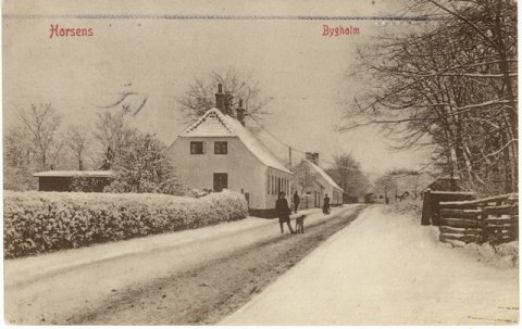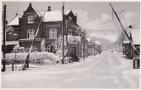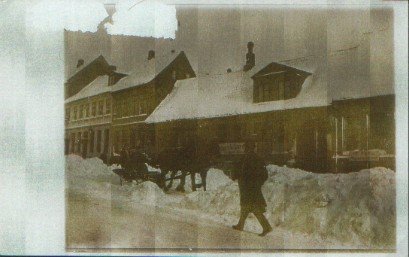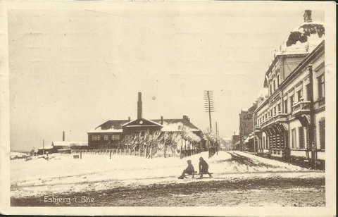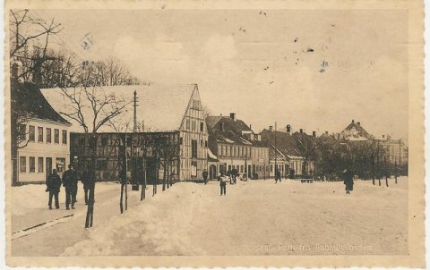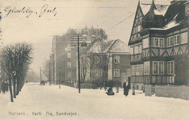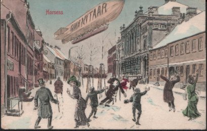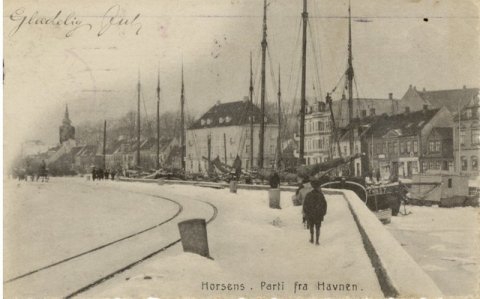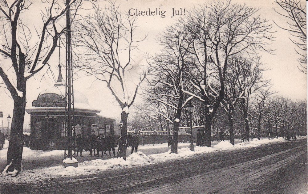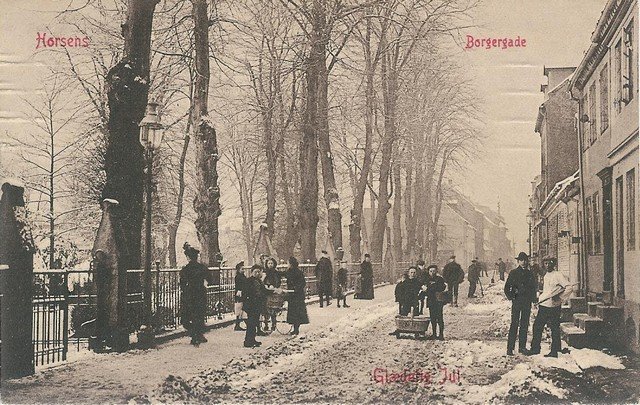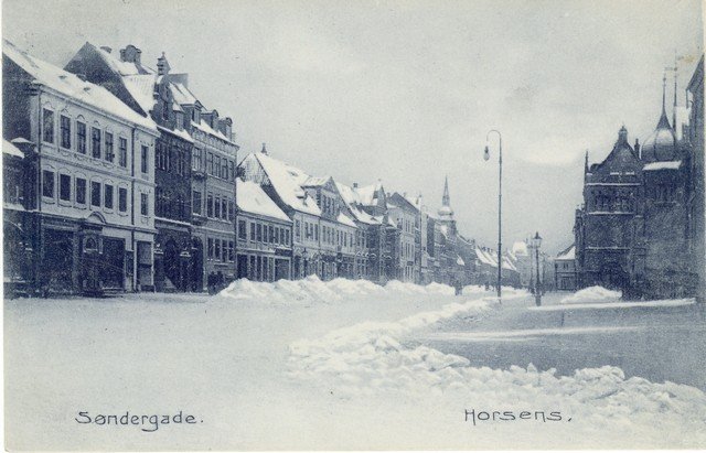 Bjørn Eriksens postkort fra Århus, samme sted som det tidligere postkort (3) Postkortet er [...]fra 1917 og viser gaden, hvor der er masser af sne.