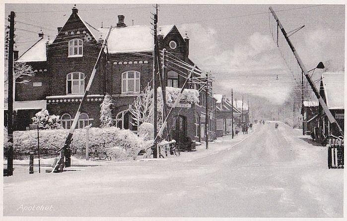 Indsendt af Bjørn Eriksen. Hadsten Apothek. Udgivet af boghandler Valdemar Drøhse i [...]Hadsten og - som mange andre kort på den tid - produceret hos Stender.