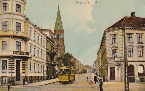 Bjørn Eriksen skriver: Dette er gaden, som leder videre til "Strøget", Sø [...]ndergade i Århus. Ryesgade ligger sådan, at det er den første gade, man ser, når man kommer som togrejsende til Aarhus Banegaard.