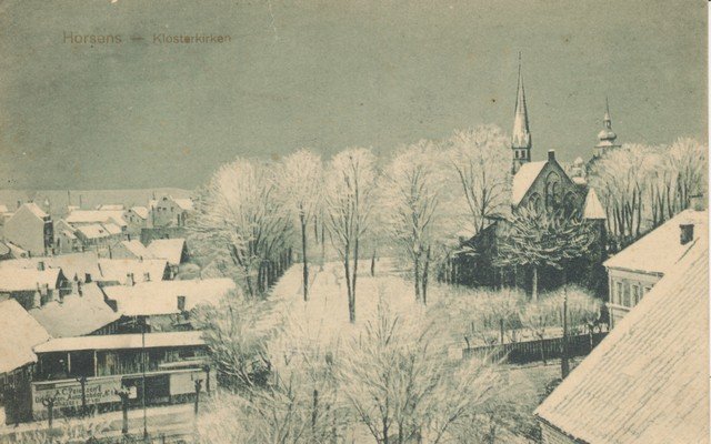 Kirken til venstre er Den katolske Kirke i Aarhus.