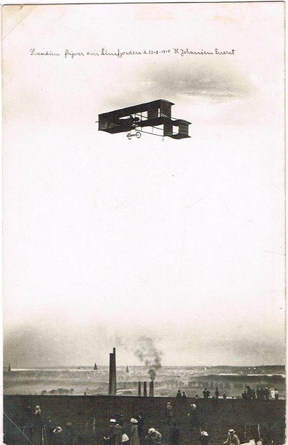 Flyvemaskinen er en L.V.G Bll tilhørende Hærens Flyveskole 1917-1924, pilot ved ?X? er Peter Nielsen, han var på dette tidspunkt leder af Hærens Flyveskole. Kortet ejes af Torben Norup Sørensen