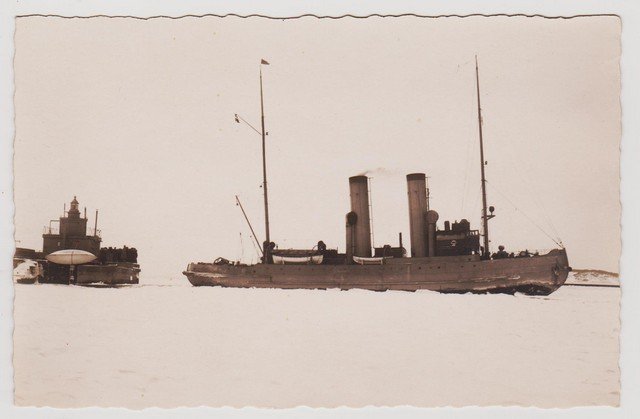 Vinterbillede af isbryderen ?Tyren? ved Knudshoved i 1922.