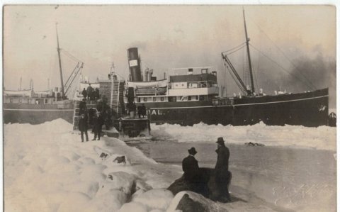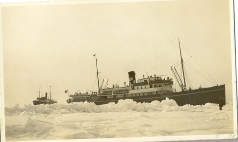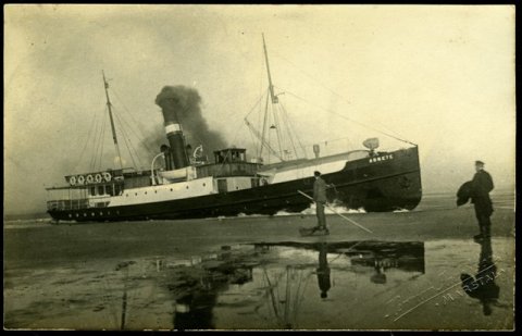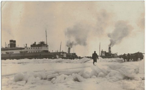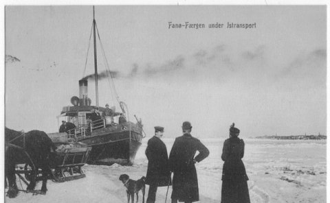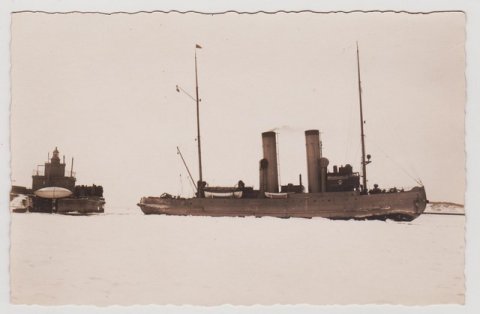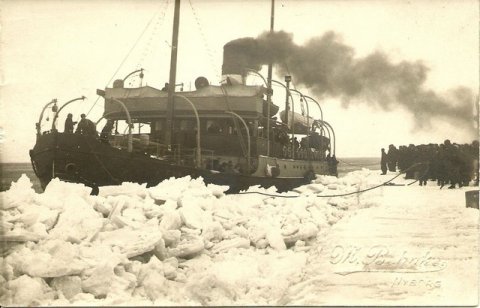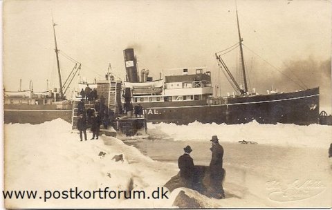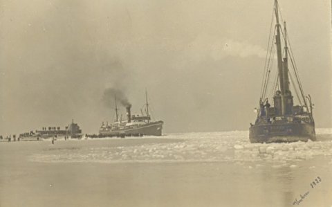 Vinterbillede af isbryderen ?Tyren? ved Knudshoved i 1922.
