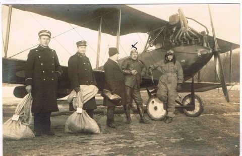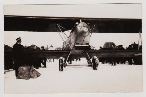 Flyvemaskinen er en L.V.G Bll tilhørende Hærens Flyveskole 1917-1924, pilot ved ?X? er Peter Nielsen, han var på dette tidspunkt leder af Hærens Flyveskole. Kortet ejes af Torben Norup Sørensen