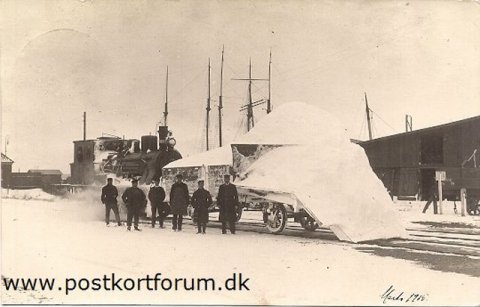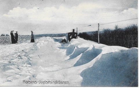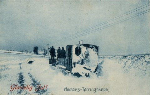 Horsens Juelsmindebanen ? snerydningshold sendt ud. Stemplet den 23.12.1908 i Klakring som var en af stationerne. [...]Kortet ejes af Frank Miller