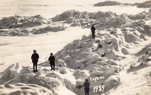 Kegnæs Drej på Als vinteren 1929/30 med meterhøje isskruninger. Kortet ejes af Herluf [...]Chr. Jensen